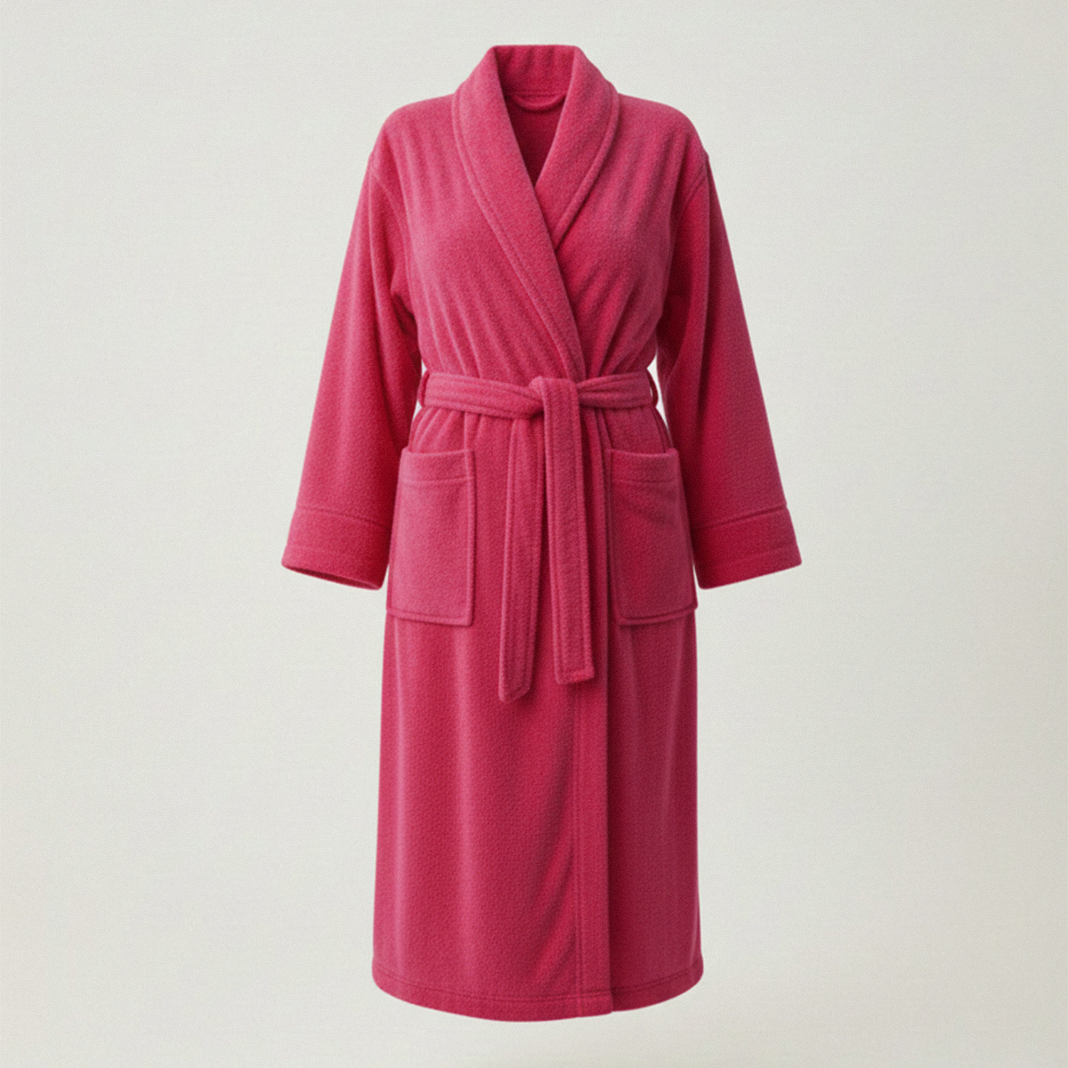 Designed with a practical hood for extra warmth and moisture absorption, this robe is perfect for relaxing at home, after bathing, or at the spa. The adjustable waist belt ensures a secure and flexible fit, while the spacious front pockets add convenience. The vibrant pink colour brings a fresh, stylish touch to your loungewear collection.
